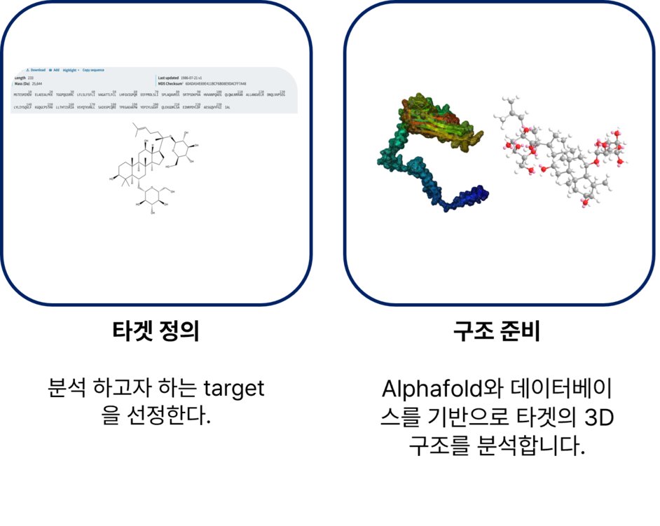 실제 세포·동물실험 이전 단계에서 유망 후보를 선별하고, 이미 확보된 in vitro / in vivo 데이터를 뒷받침하는 기전적 근거(mechanistic rationale)를 제공하여 신약개발·천연물 소재 개발·국책과제 기획 등을 효율적으로 지원합니다.