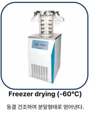 감압 농축으로 고형분을 맞추고, 분무 또는 동결건조 방식으로 파우더를 생산합니다.