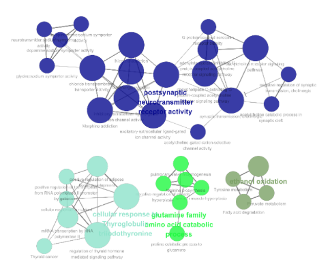 도출된 유전자 목록을 바탕으로 관련 생물학적 경로(Pathway) 및 기능적 연관성(GO/KEGG 기반) 을 내부 데이터셋에서 확인합니다.